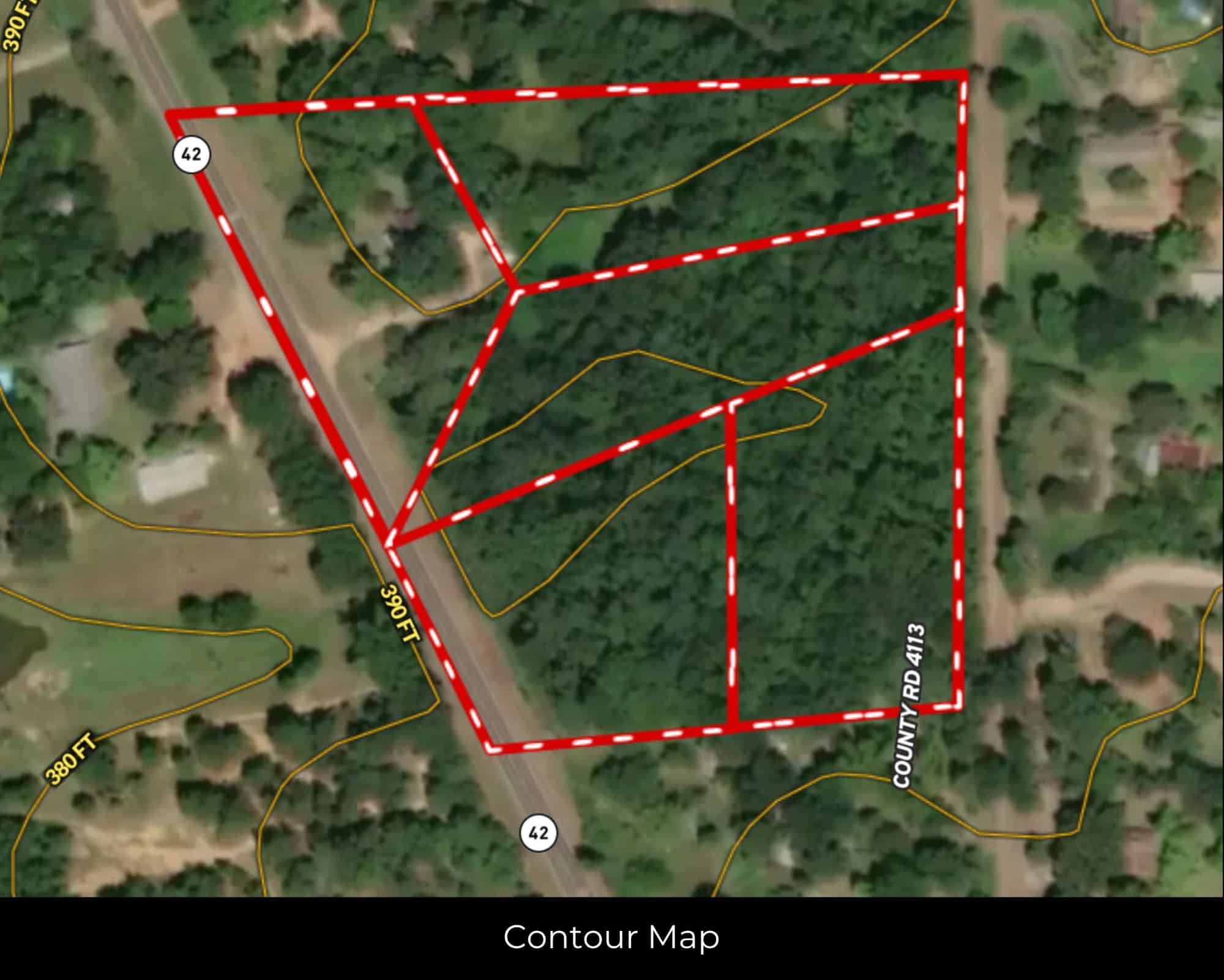 Live in the country and walk to town! This 1.443-acre wooded mobile home lot is ready to go with power, water and septic. This is the last large, undeveloped property in this quiet neighborhood just ¾ mile north of Price. It has road access on two sides – State Highway 42 on the West and County Road 4113 on the East. The terrain is level and mostly tree covered with a few naturally cleared areas. Neighboring homes are modest but well-maintained. Power is along the highway, and the property is not in a flood zone. This mobile home lot is just the right size for your dream house and all your kid’s 4H projects. Carlisle ISD schools are an easy 15-minute walk.
