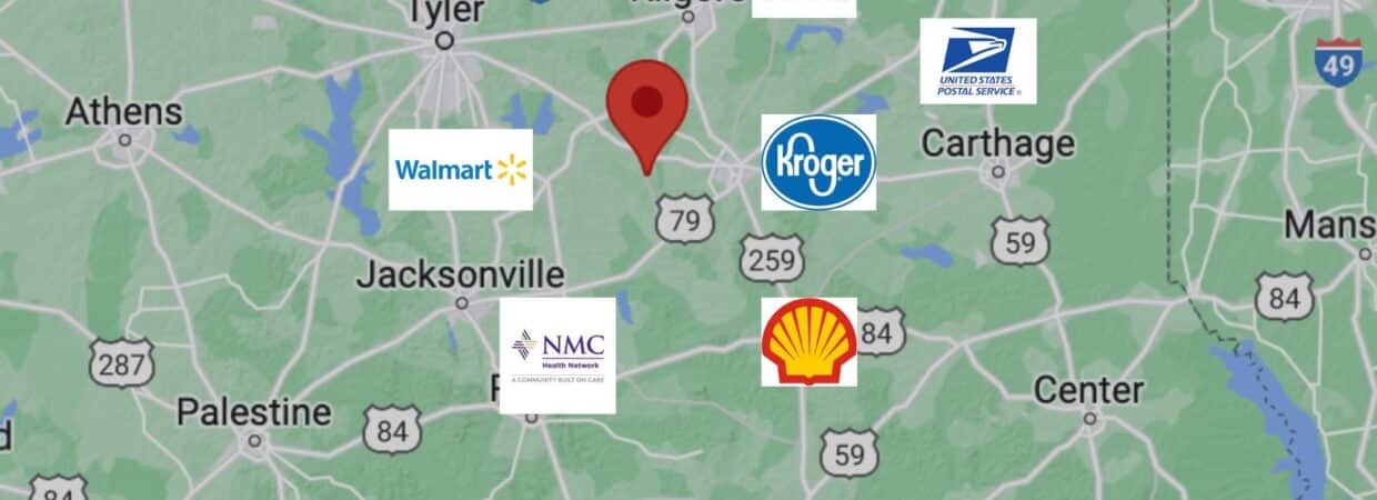 📍 Northeast Corner: 32.1457, -94.9492 (Google Map)