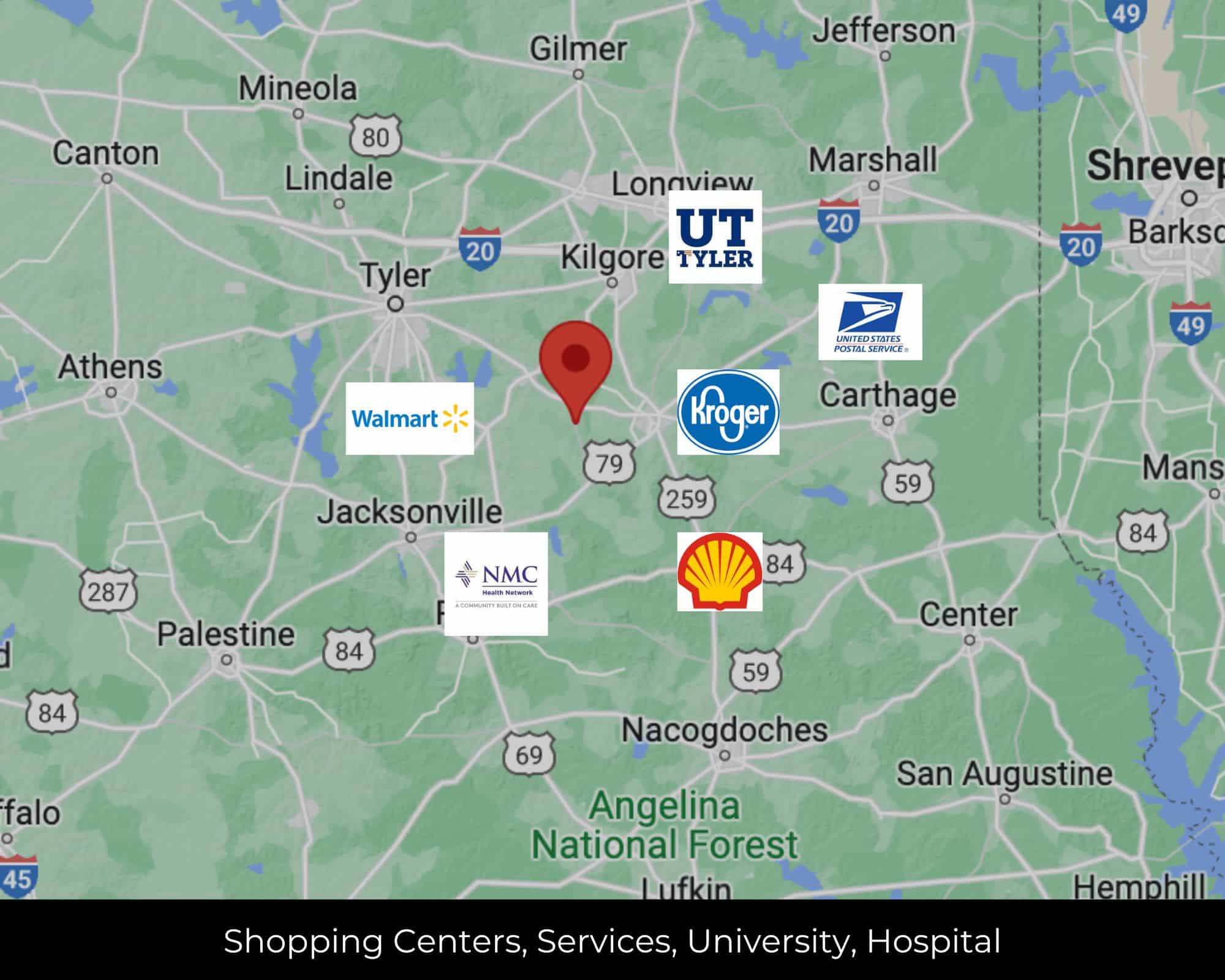 18 min (13.0 miles) to Henderson, TX – Population: 13,109 (about)