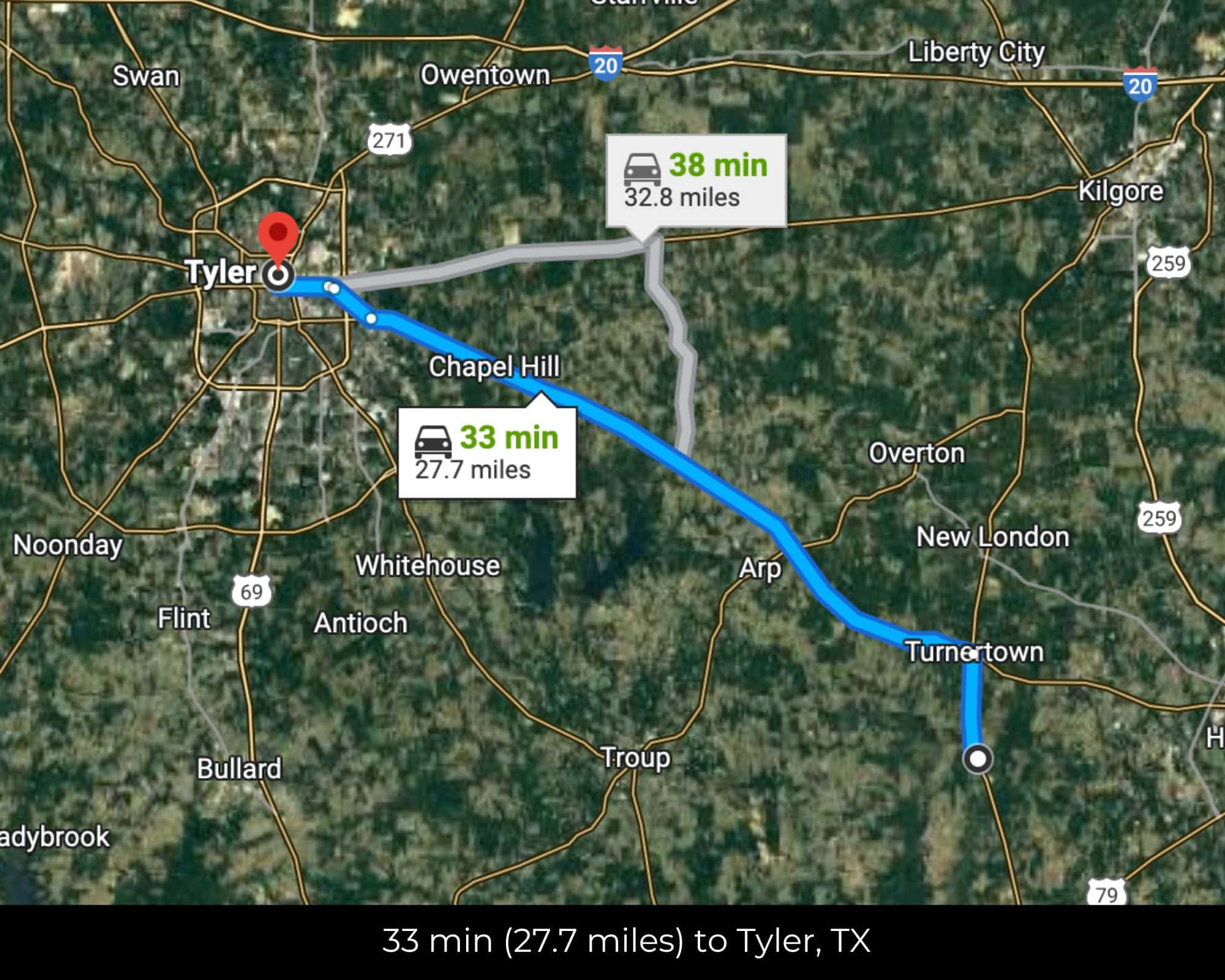 36 min (27.7 miles) to Tyler, TX – Population: 110,936 (about)