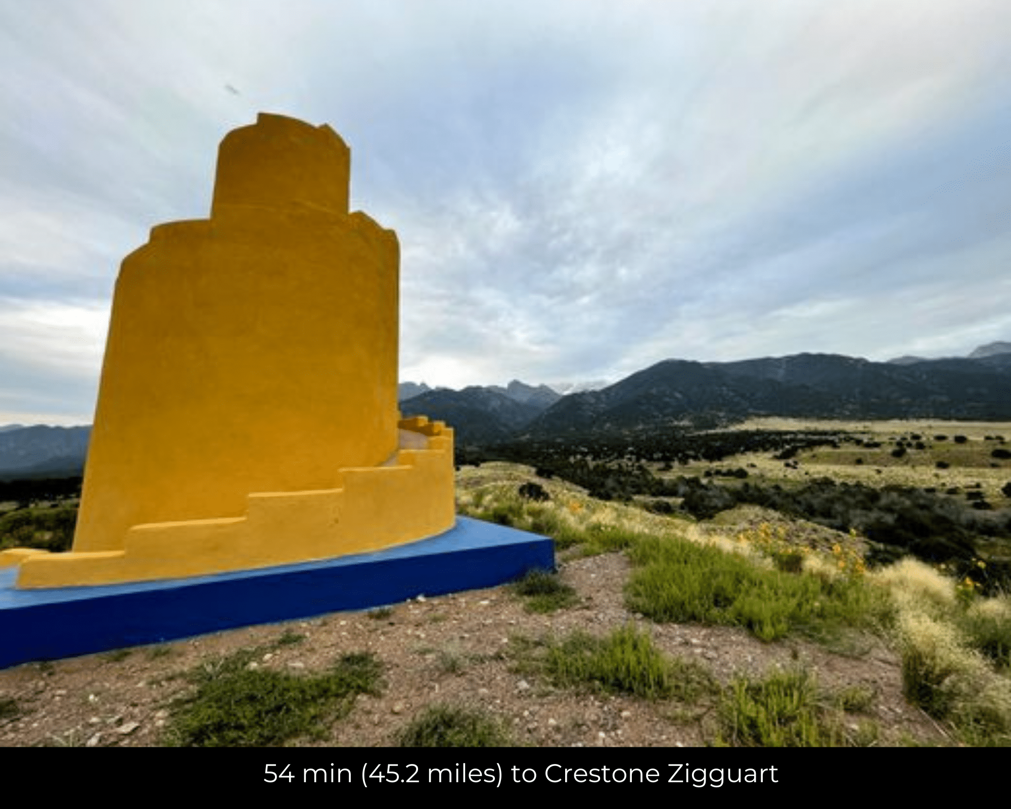 - 54 min (45.4 miles) to Crestone Ziggurat (about)