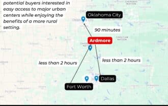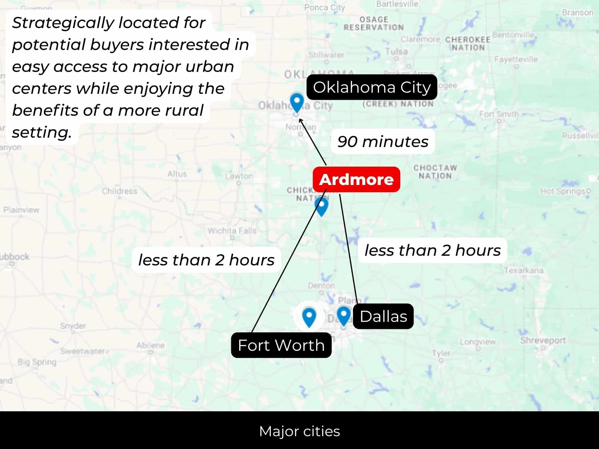 With easy access to the Burlington Northern Santa Fe Railway, major local roads, and less than 10 minutes to downtown Ardmore, the location supports a range of uses. Plus, it's strategically situated just 90 minutes from Oklahoma City and under 2 hours to Dallas and Fort Worth, making it an ideal hub for regional connectivity.