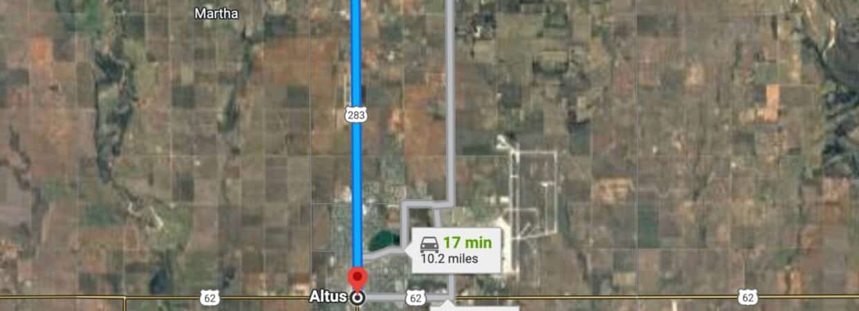 16 min (10.3 miles) to Altus, Oklahoma (about)