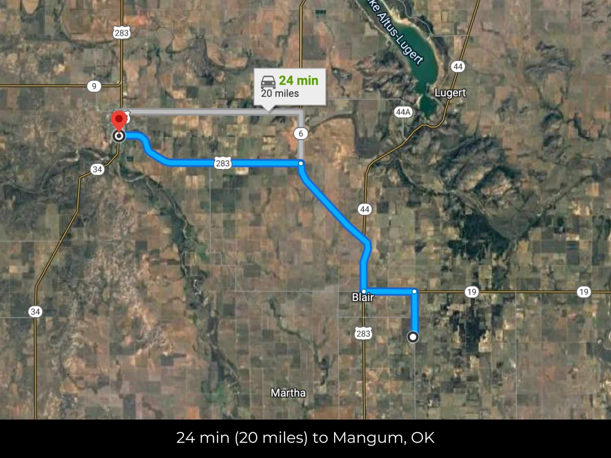 19 min (17.6 miles) to Mangum, Oklahoma (about)