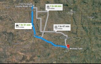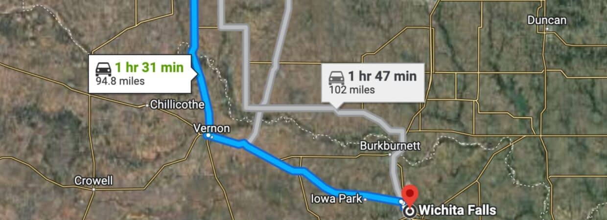 1 hr 31 min (94.8 miles) to Wichita Falls, Texas (about)