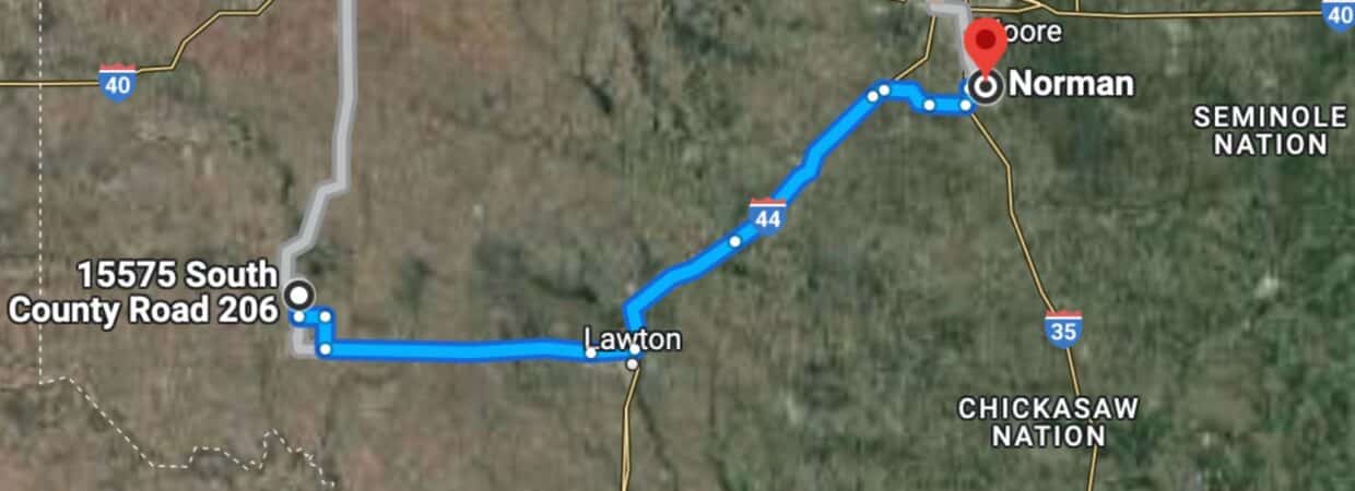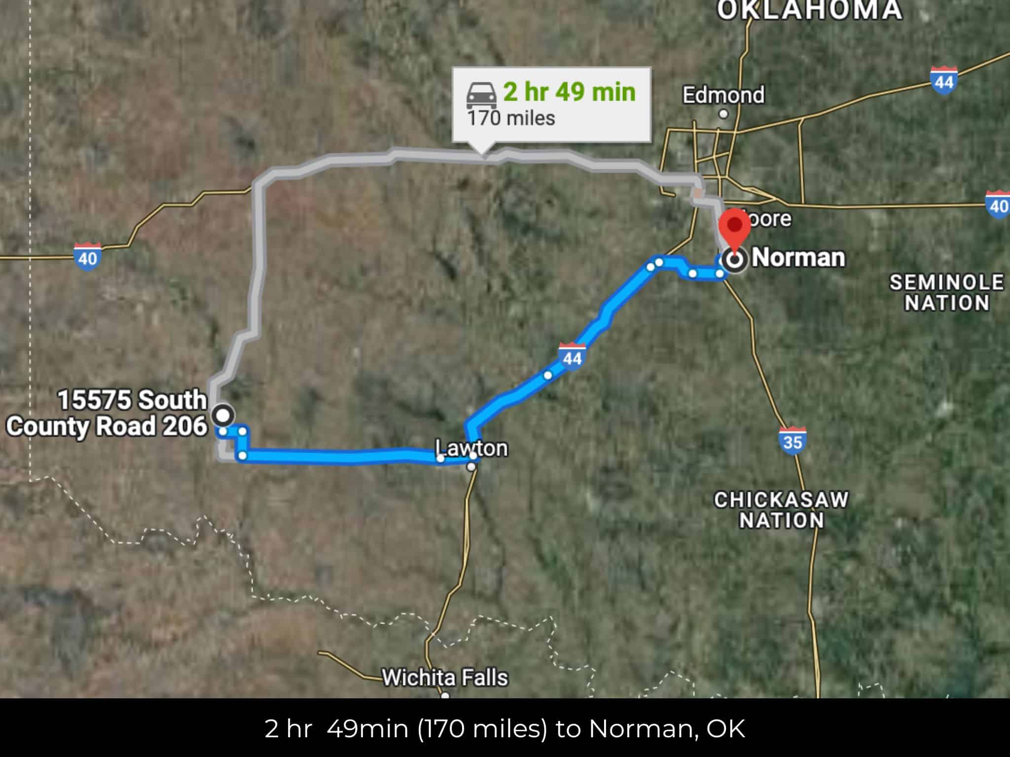 2 hr 15 min (139 miles) to Norman, Oklahoma (about)