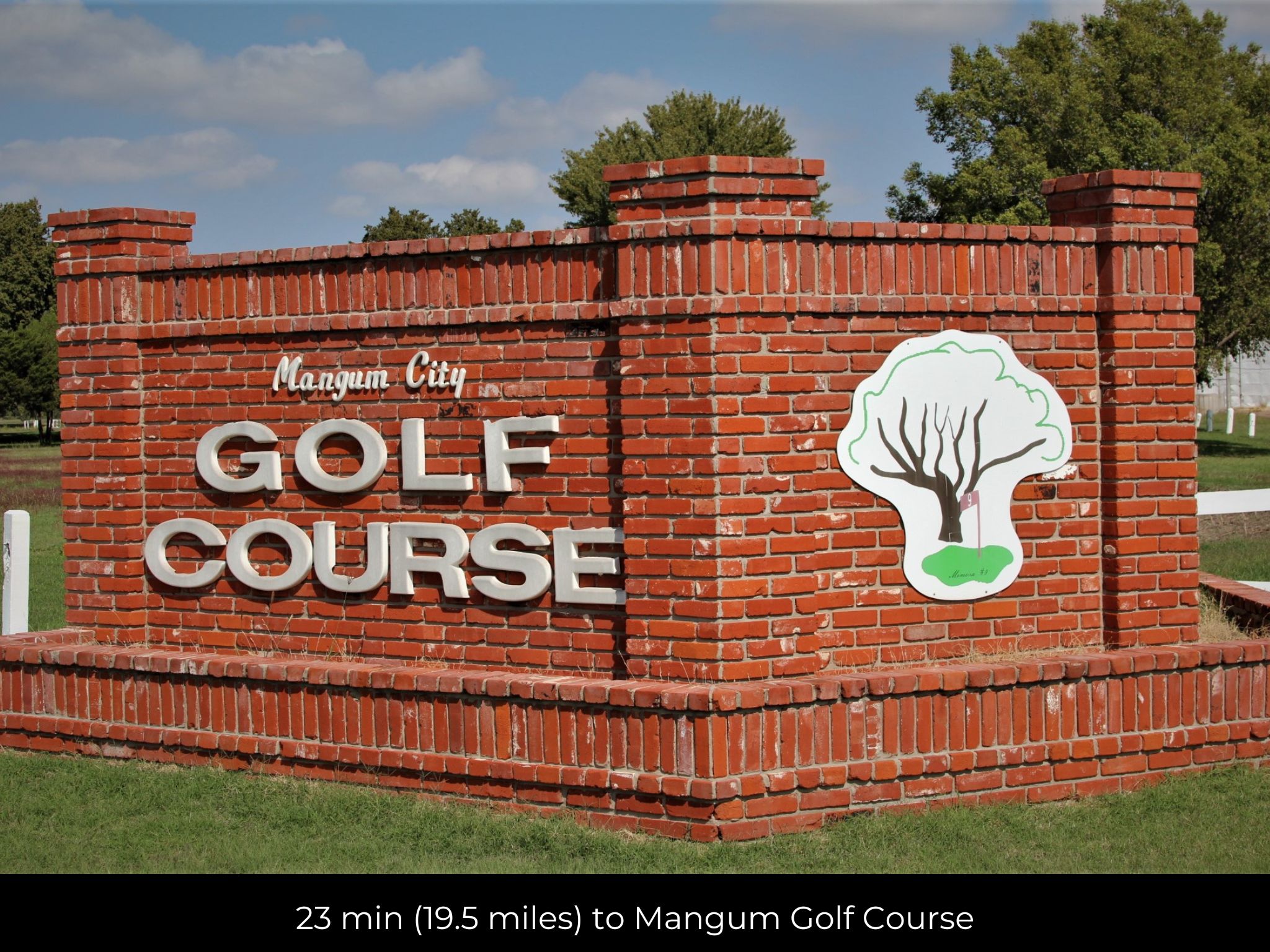23 min (19.5 miles) to Mangum Golf Course (about)