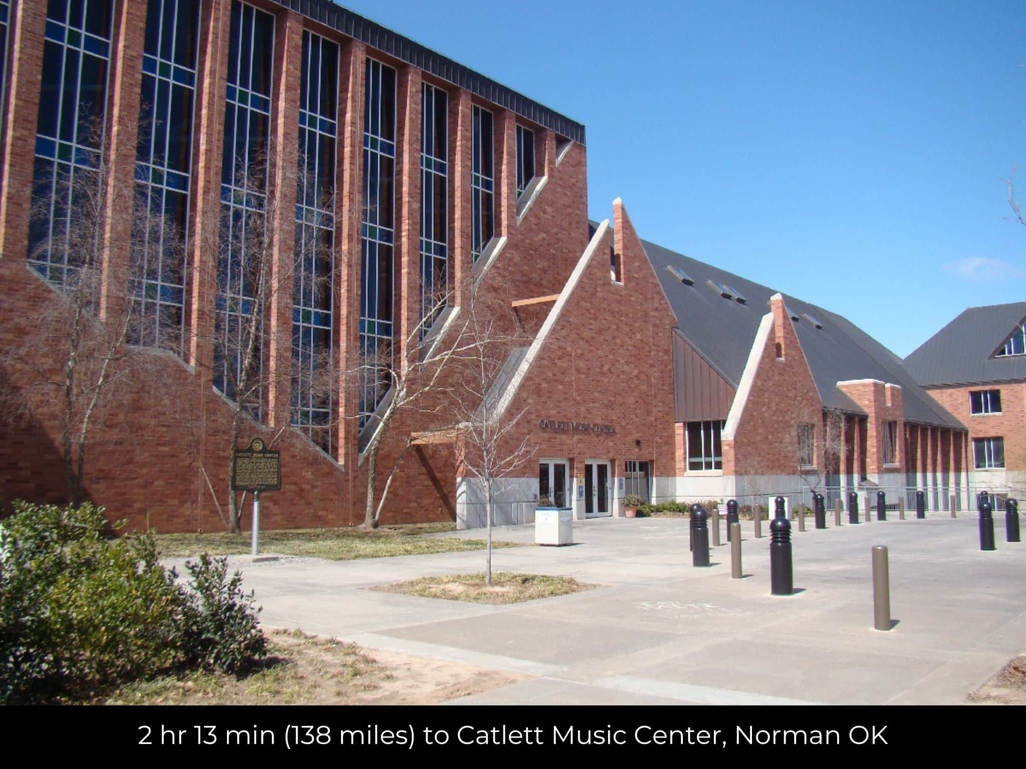2 hr 13 min (138 miles) to Catlett Music Center, Norman OK (about)