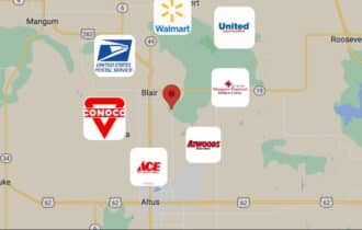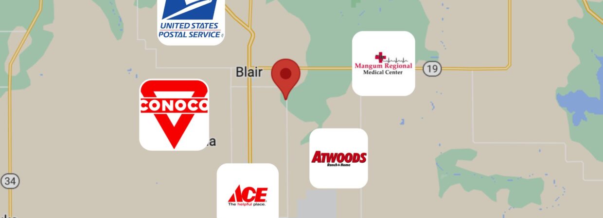 6 min (4.0 miles) to Conoco, Blair, OK (about)