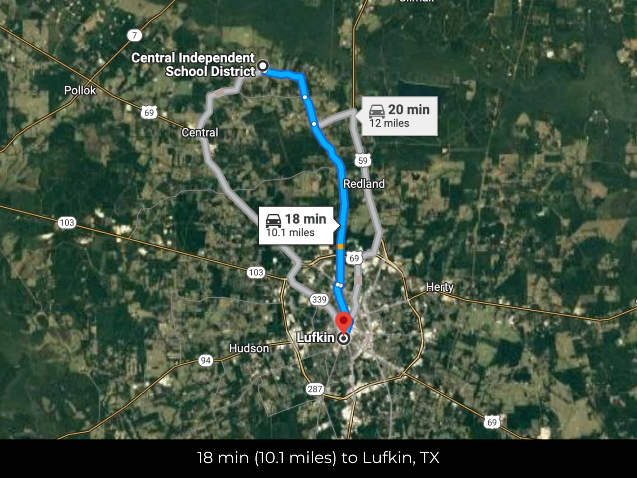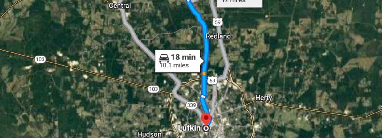 18 min (10.1 miles) to Lufkin, TX (about)