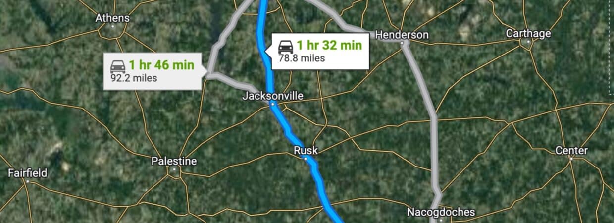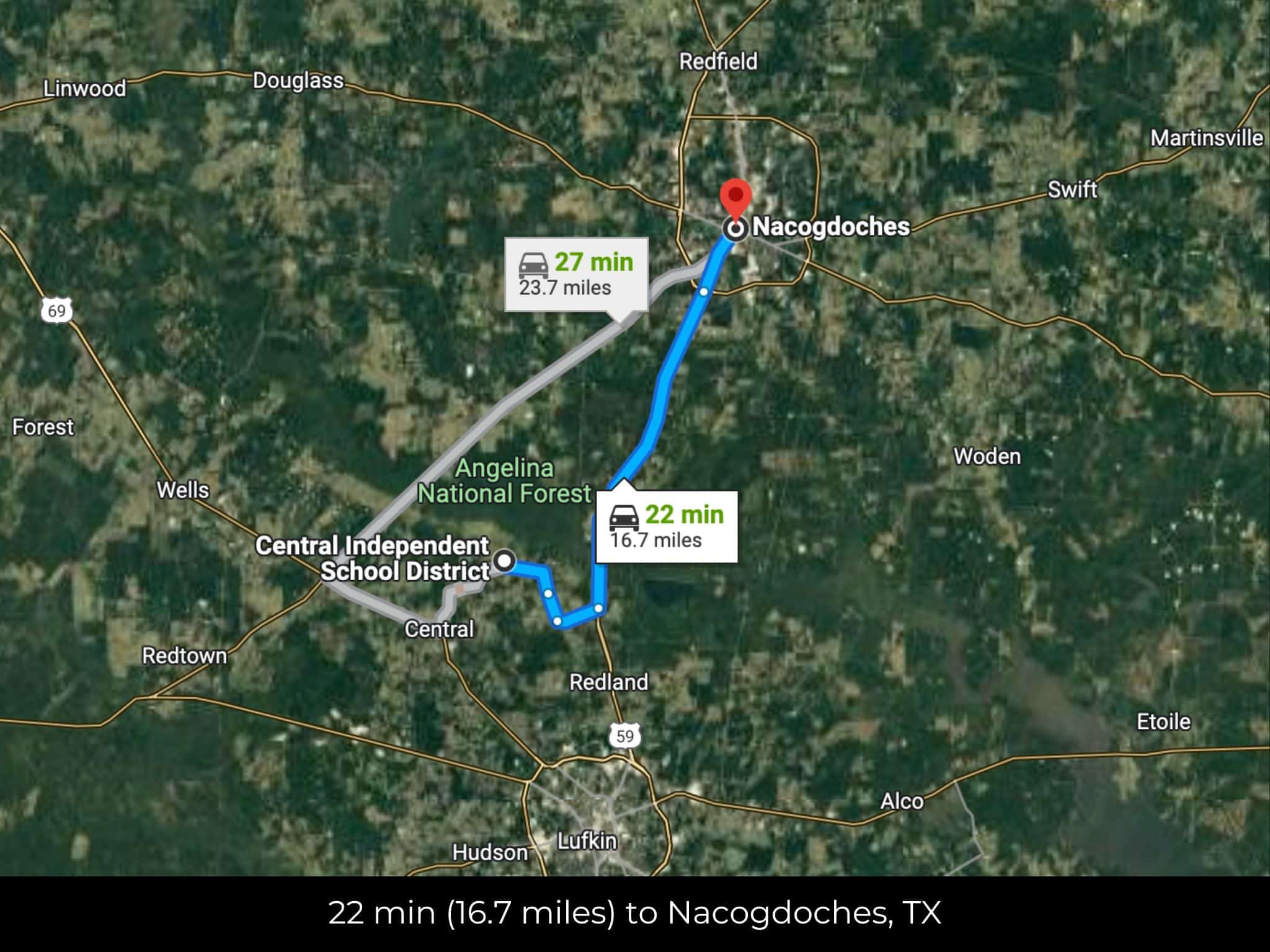 22 min (16.7 miles) to City of Nacogdoches, TX (about)