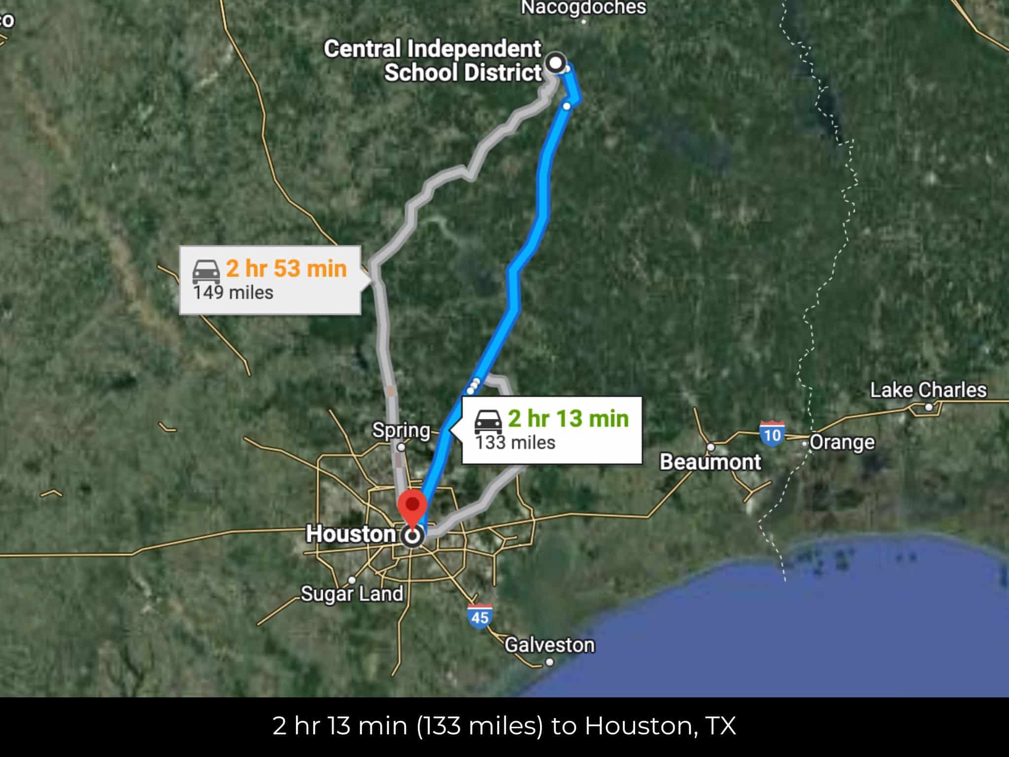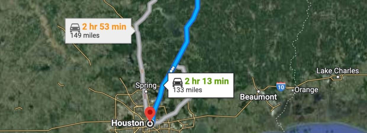 2 hr 13 min (133 miles) to Houston, TX (about)