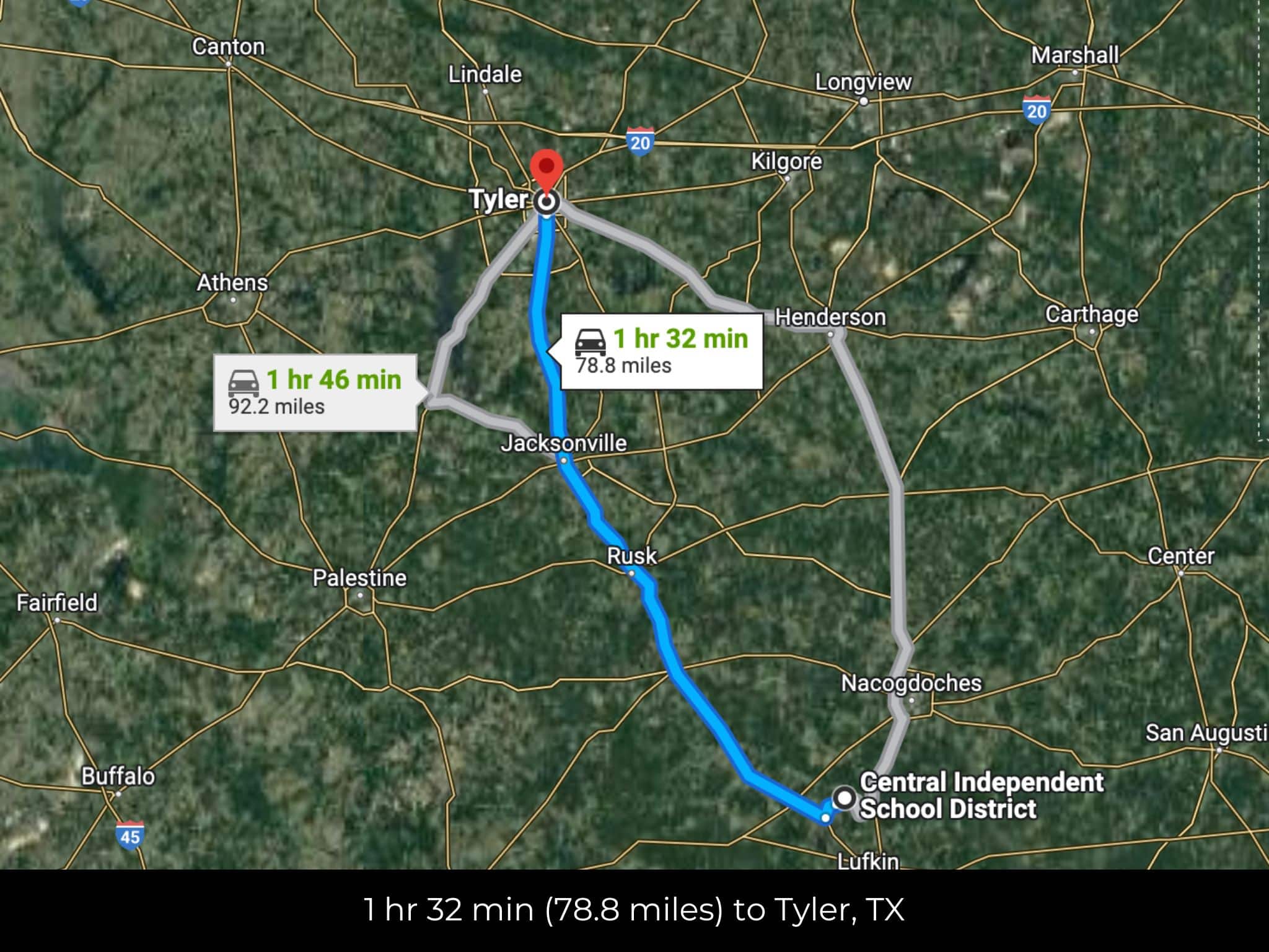1 hr 36 min (78.8 miles) to Tyler, TX (about)