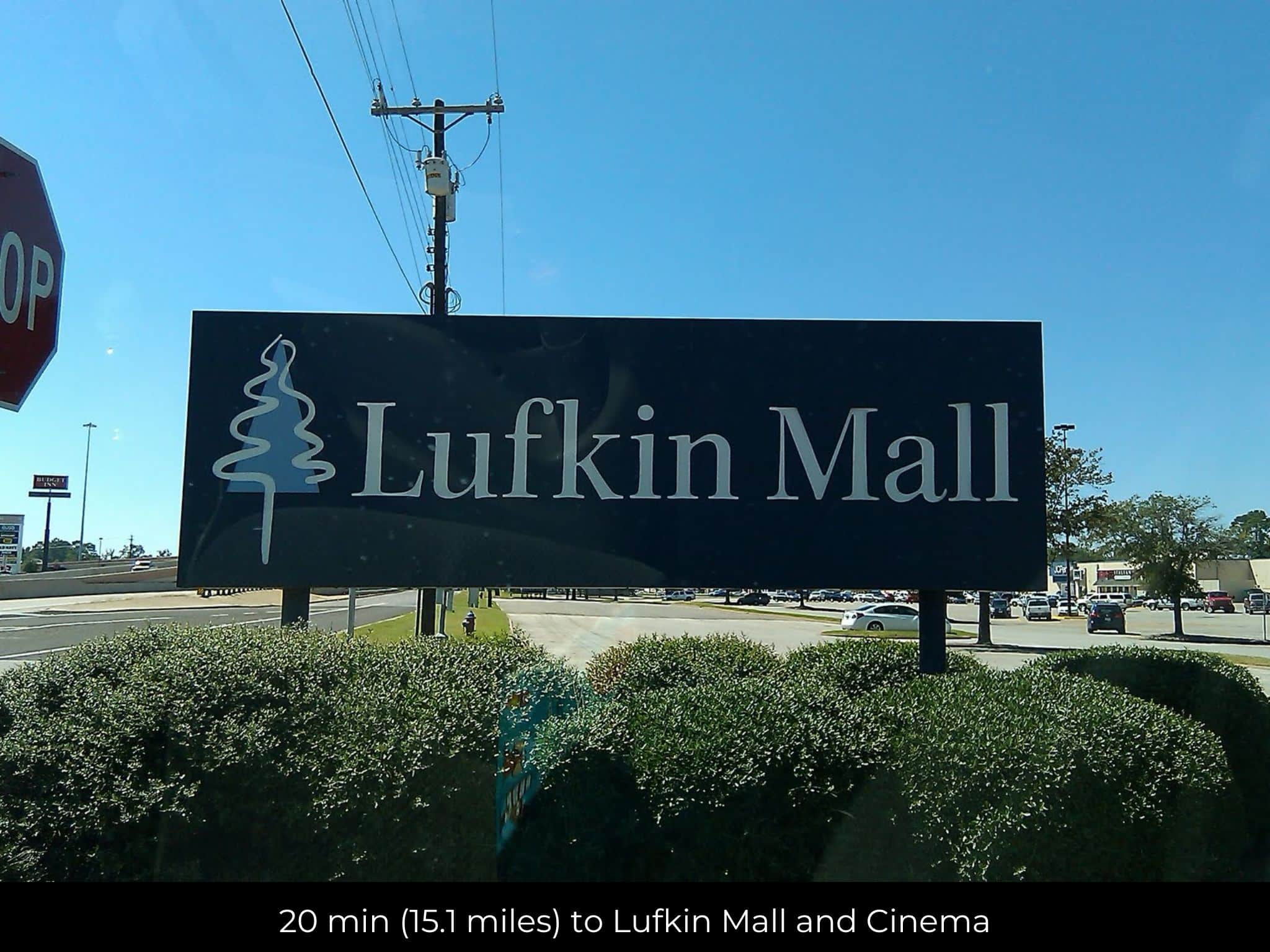 20 min (15.1 miles) to Lufkin Mall and Cinema (about)