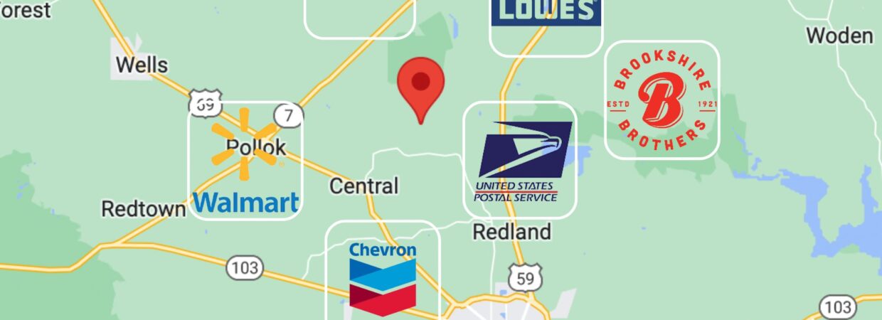 📍 Southeast Corner: 31.4561, -94.7749 (Google Map)