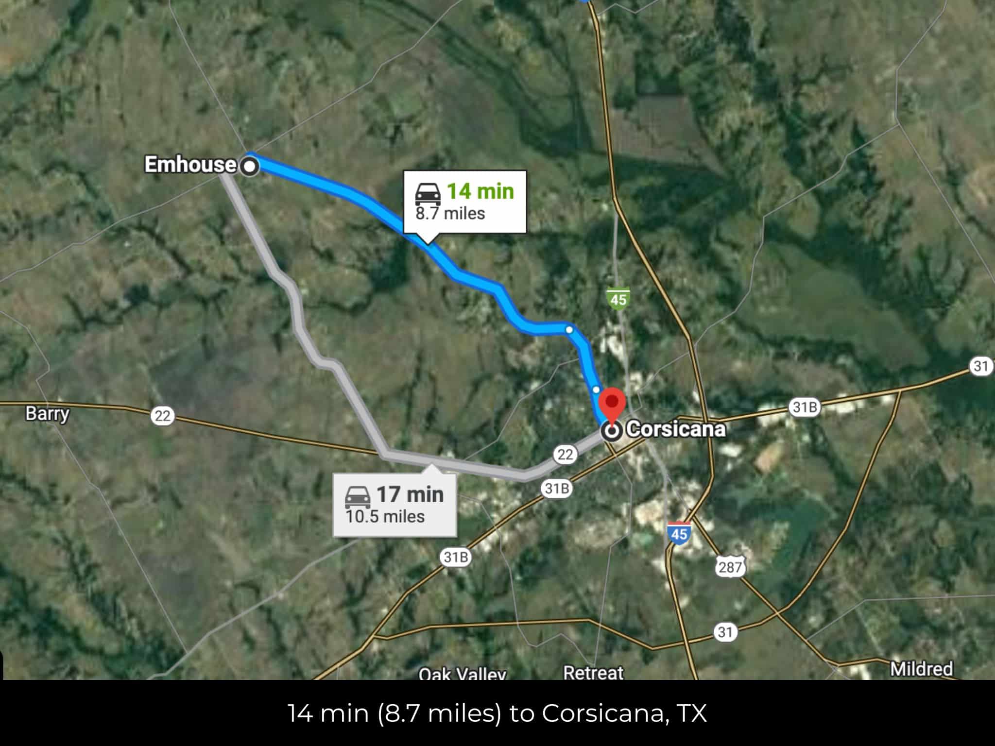 13 min (8.7 miles) to Corsicana Texas