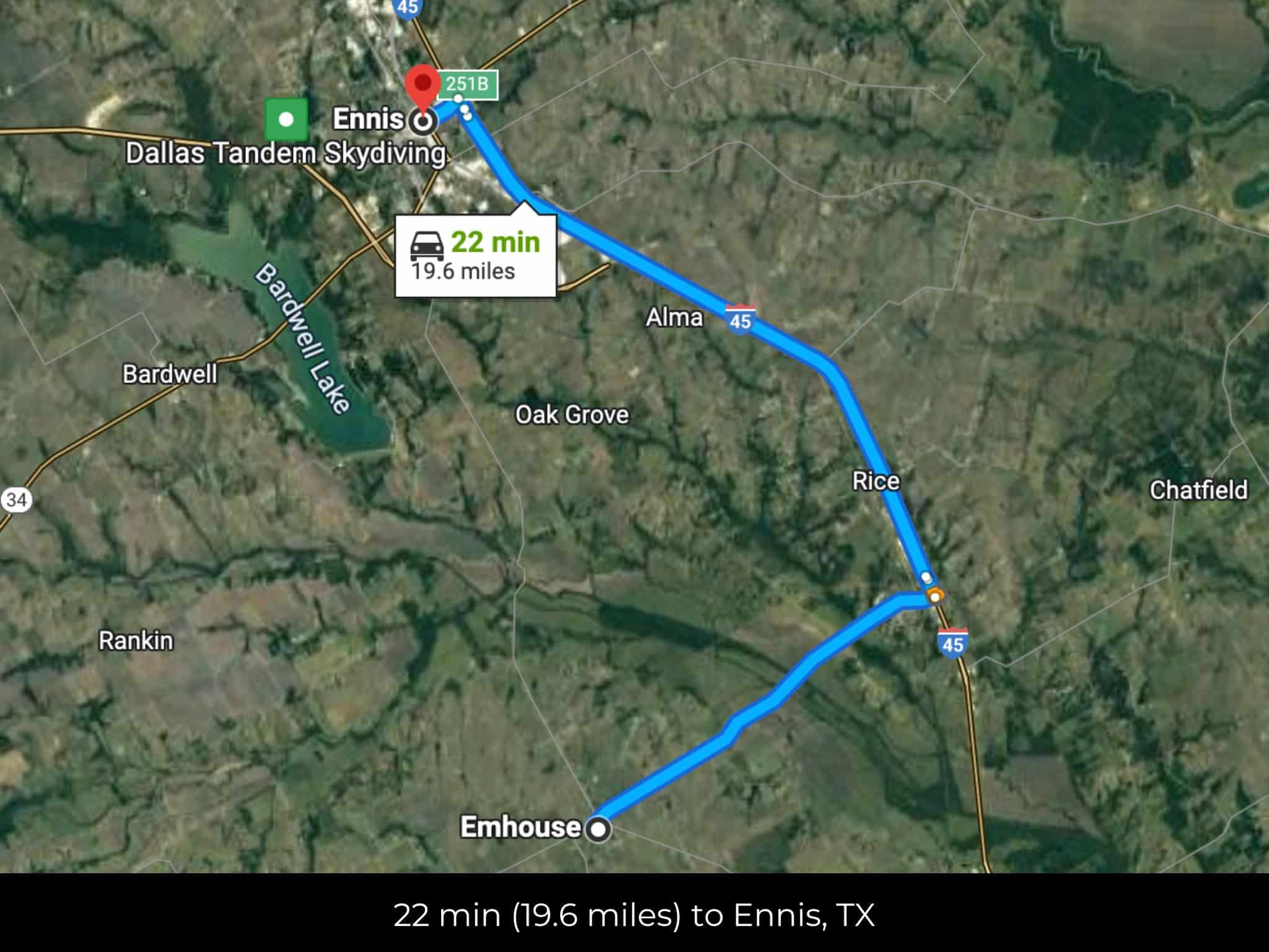 22 min (19.0 miles) to Lake Bardwell, Ennis (about)