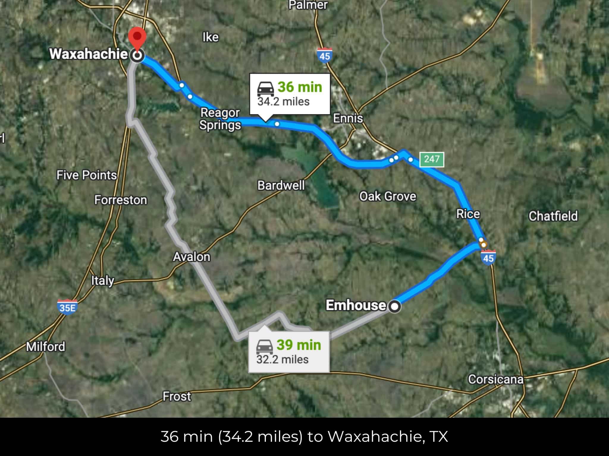 36 min (34.2 miles) to Waxahachie (about)