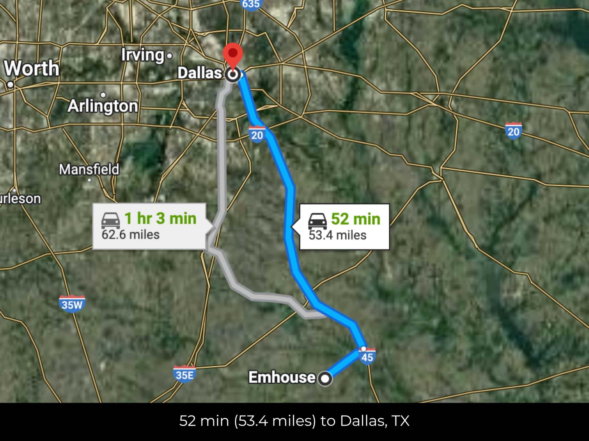 51 min (53.4 miles) to Dallas (about)