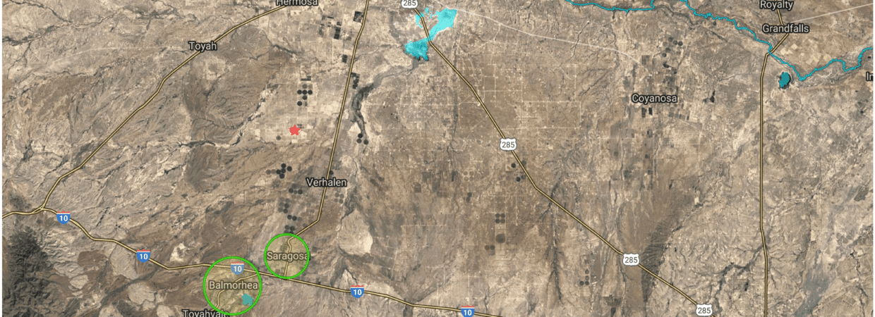 Located 21.7 miles from Pecos, TX and 20.1 miles from Balmorhea, this 96.5-acre Texas Ranchette has power, a water meter on the property, and one-half mile of frontage on County Road 336 (Barilla Road).