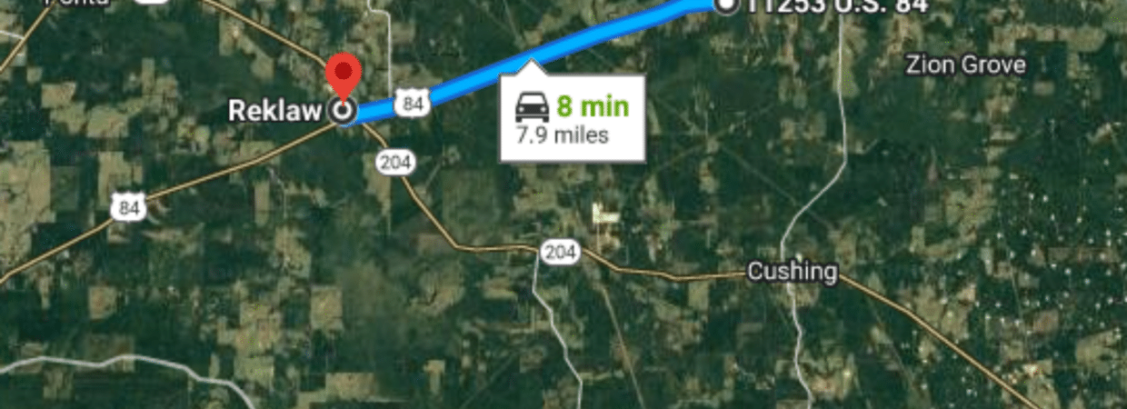 8 min (7.9 miles) to Reklaw, TX Population: 404 (about)