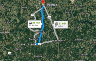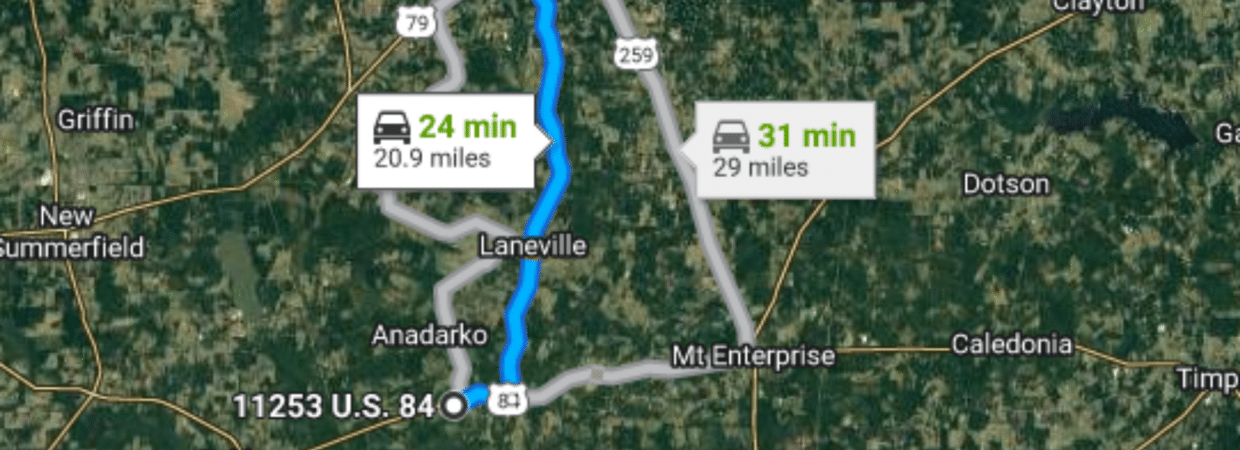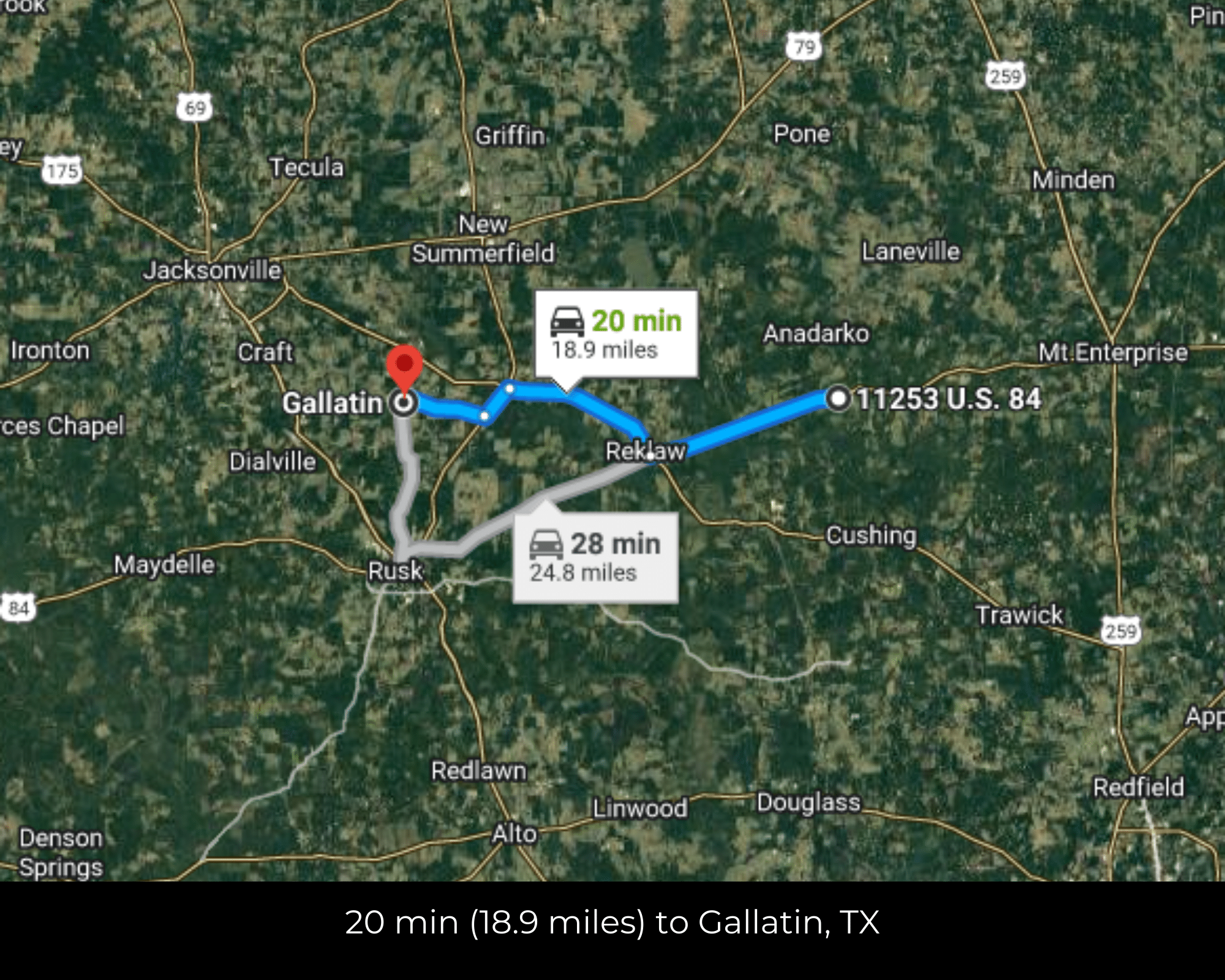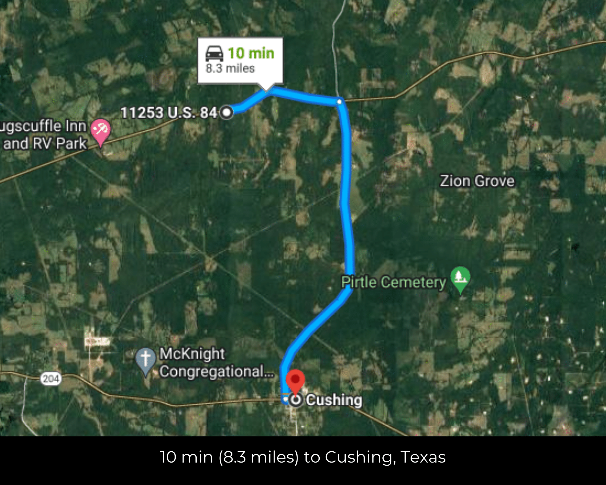 🚗 Driving Directions: Head west on US-84 W toward Co Rd 4233 7.7 mi, Turn right onto Nacogdoches St