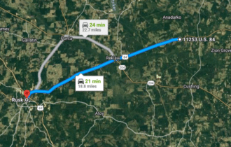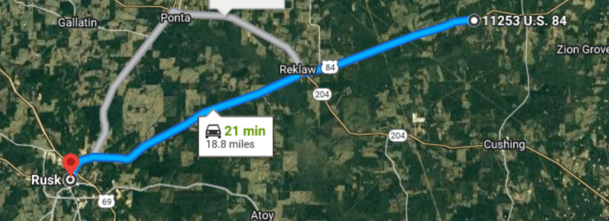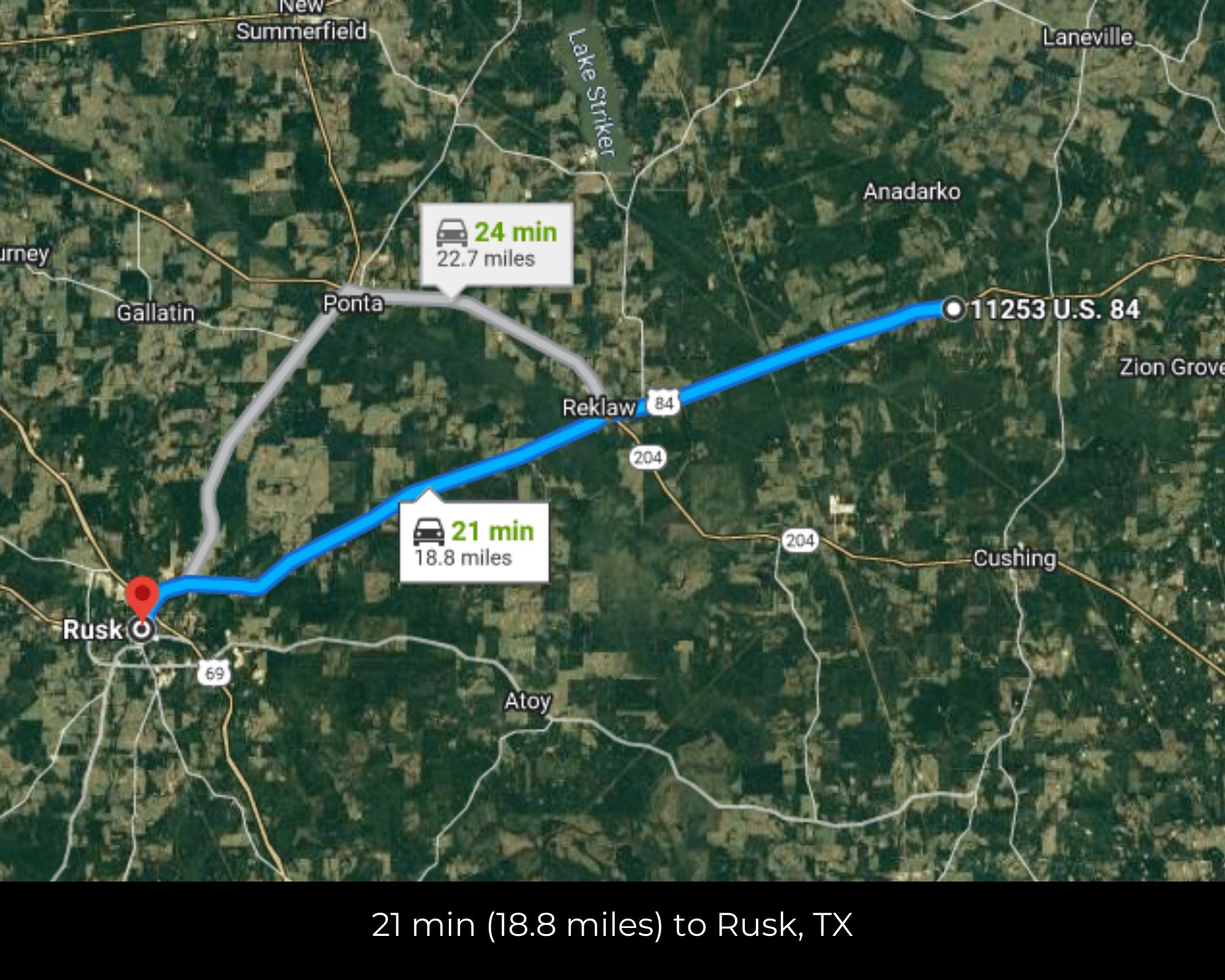 23 min (18.8 miles) to Rusk, TX Population: 5,701 (about)