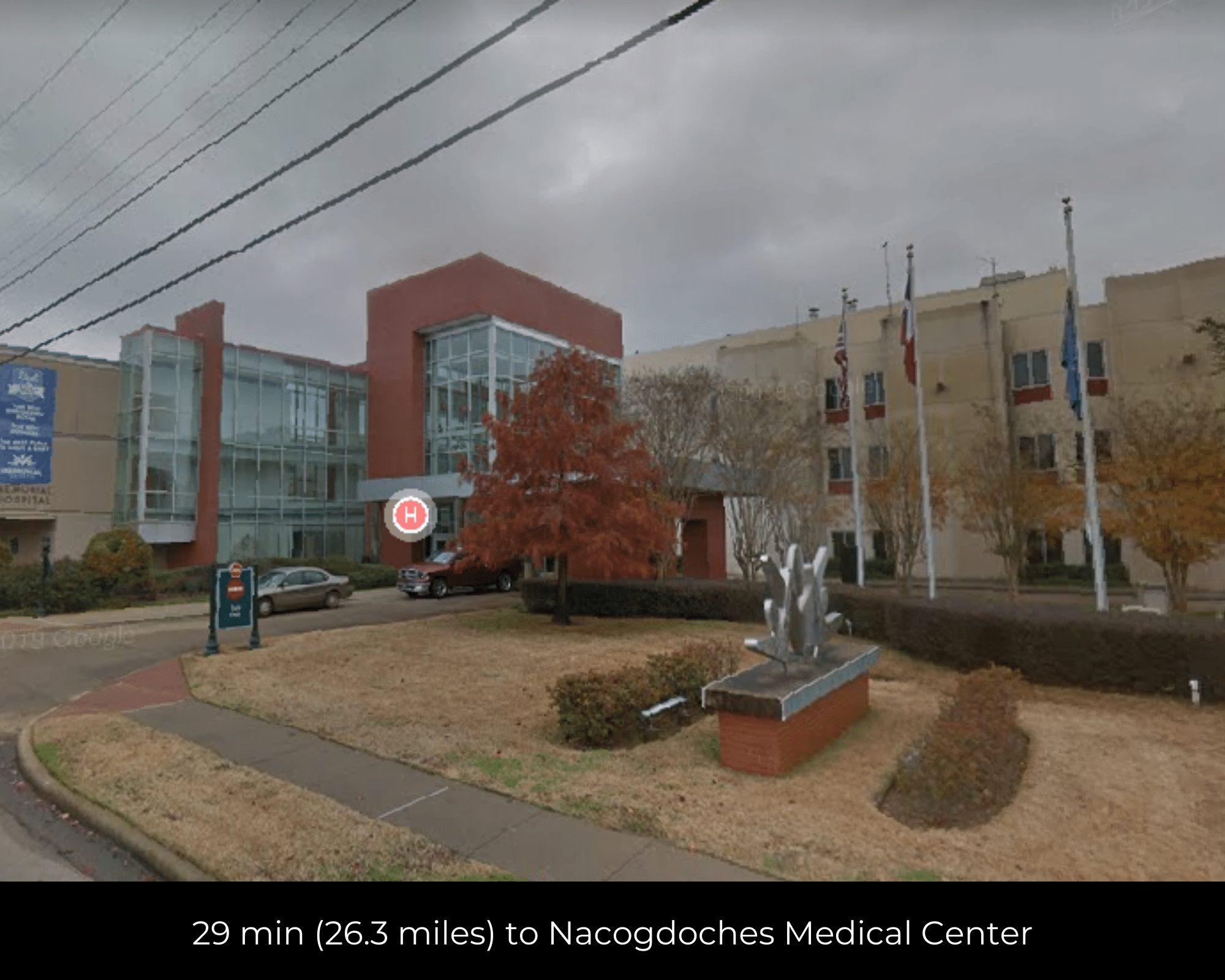 29 min (26.3 miles) to Nacogdoches Medical Center (about)