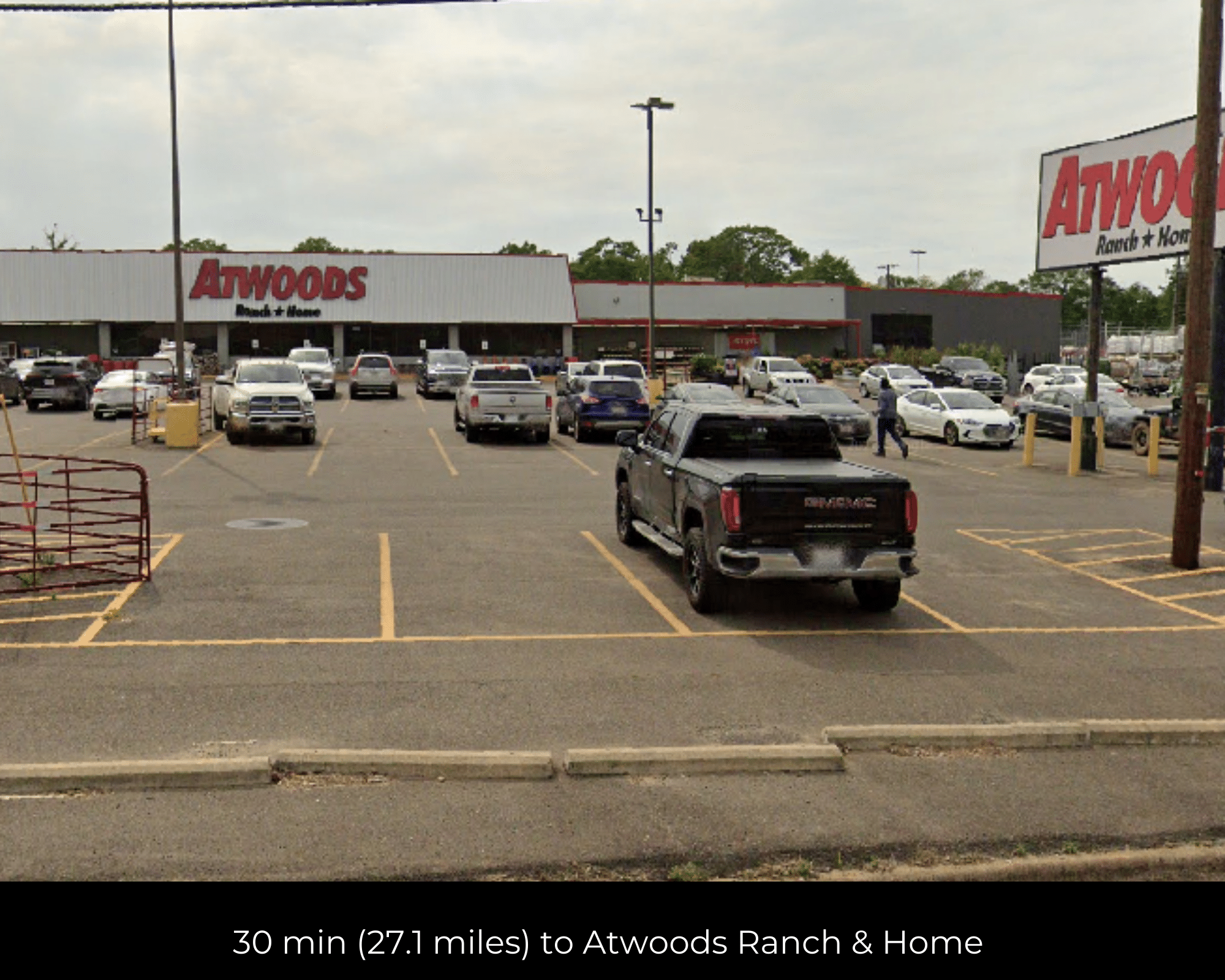 1 hr (51 miles) to Tyler, TX Population: 105,859 (about)