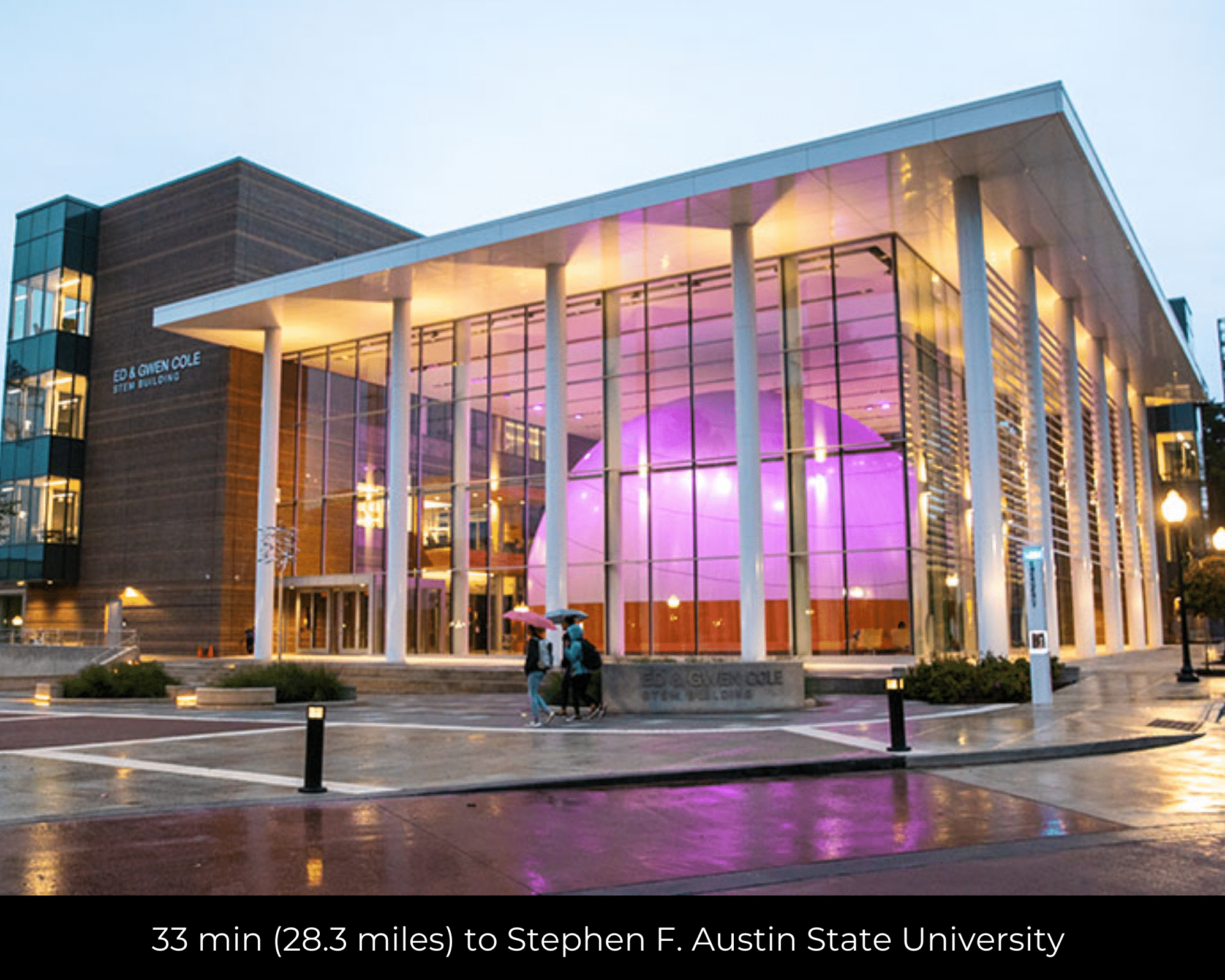 33 min (28.3 miles) to Stephen F. Austin State University (about)