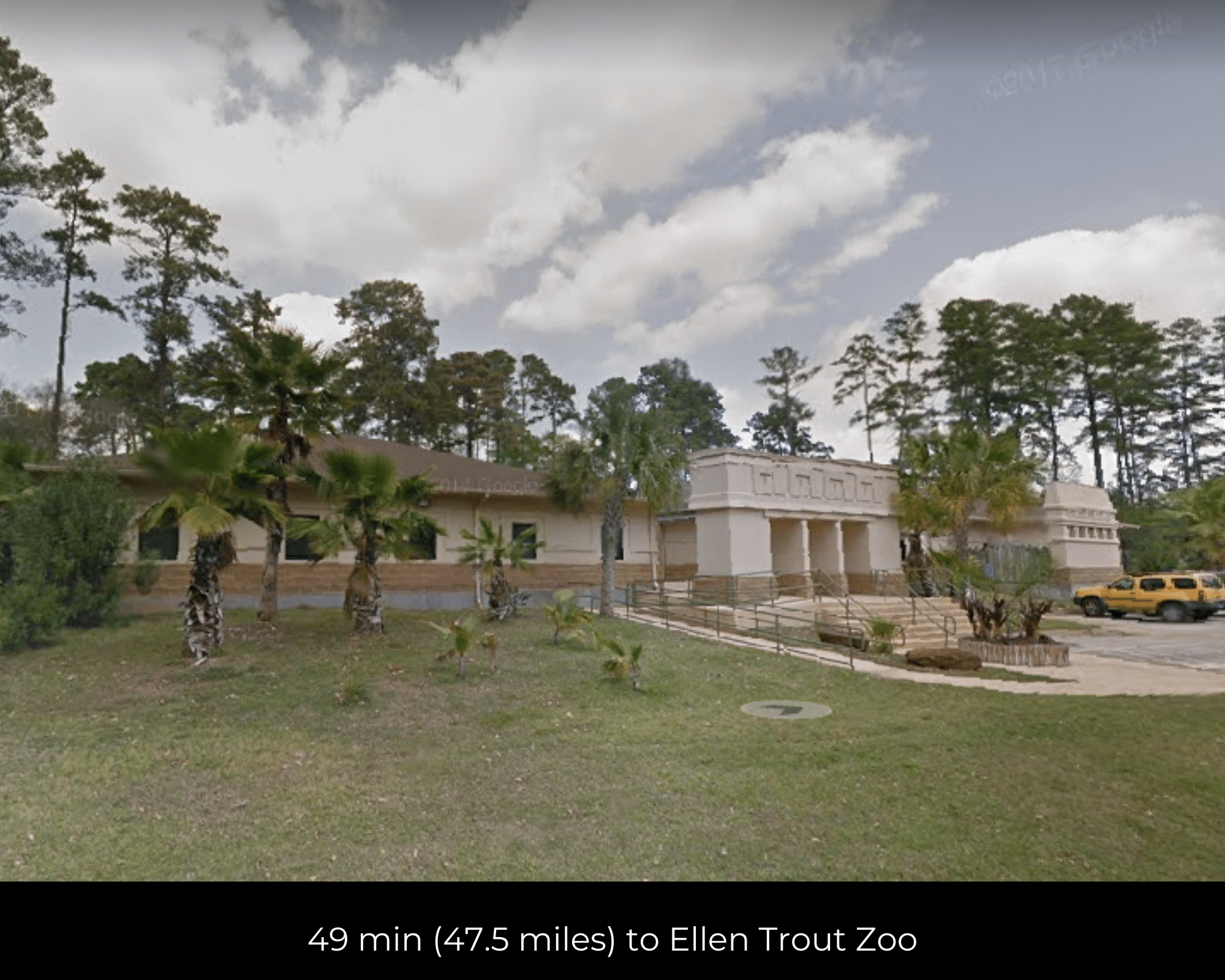49 min (47.5 miles) to Ellen Trout Zoo (about)