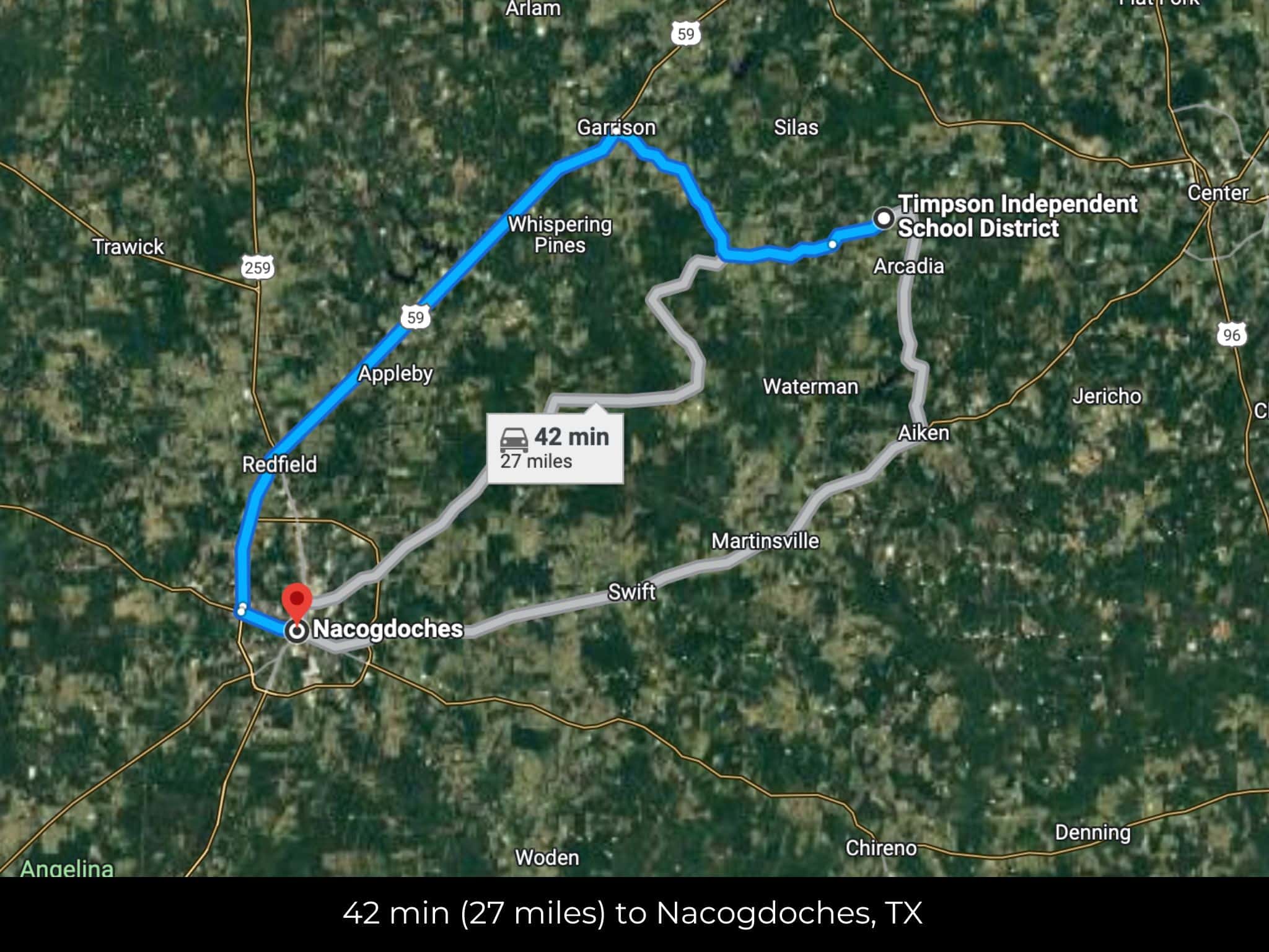 37 min (31.9 miles) to Nacogdoches (about)