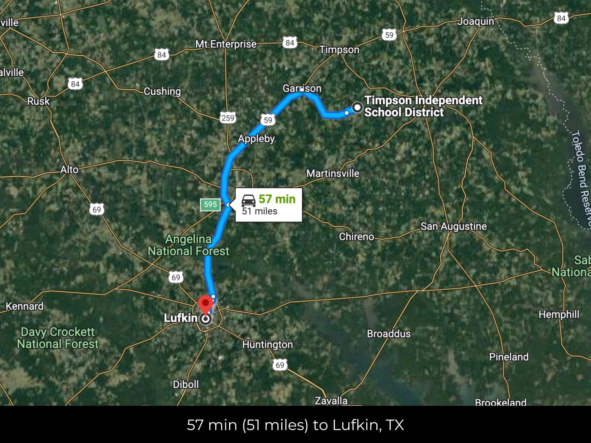 58 min (51.0 miles) to Lufkin (about)