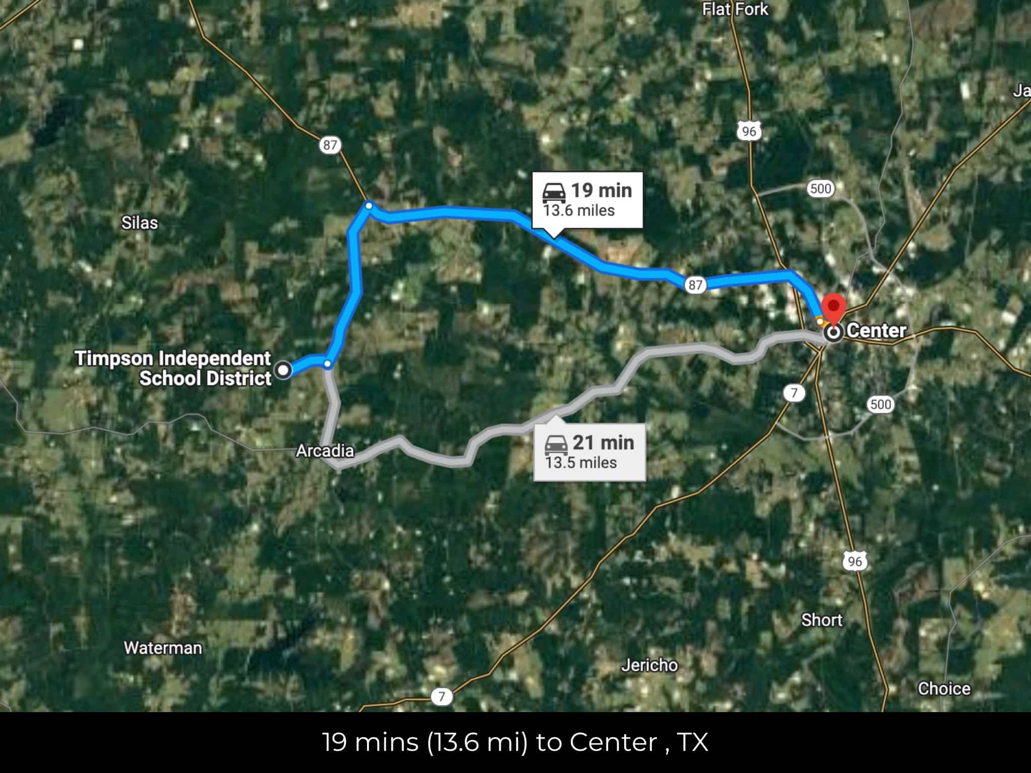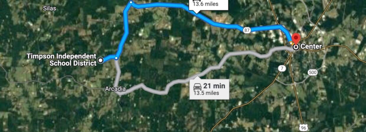 18 min (13.6 miles) to Center, TX (5,230)