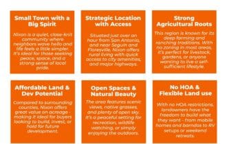 🔌 Power: City of Nixon Utilities or Solar, wind, propane, or alternative energy source.