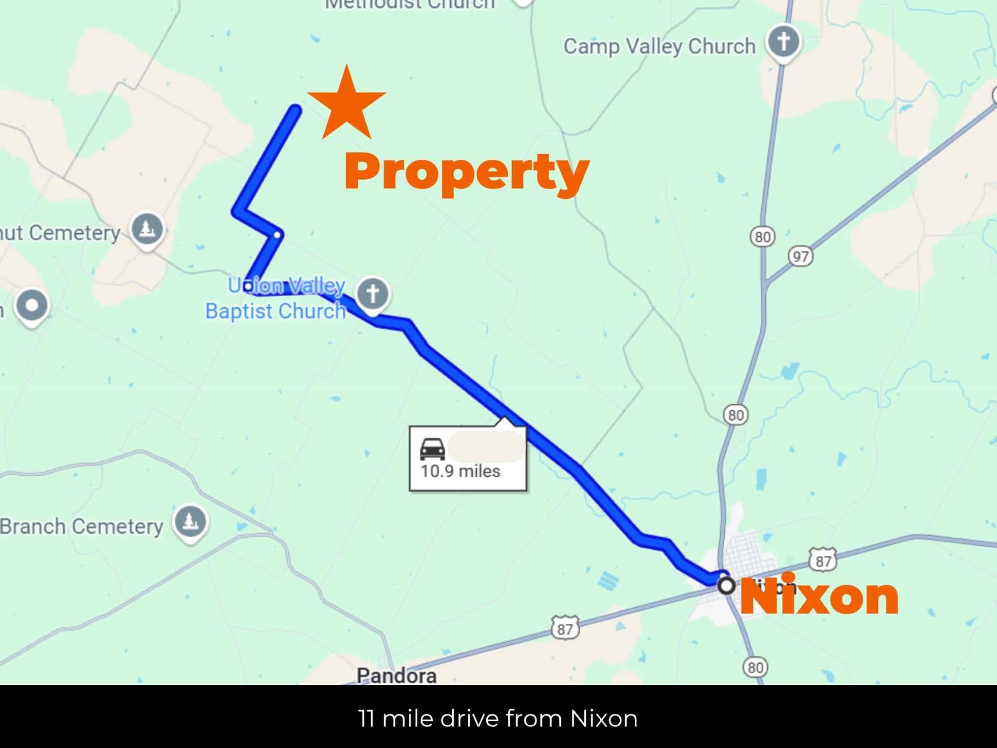 11 miles from Nixon, TX.