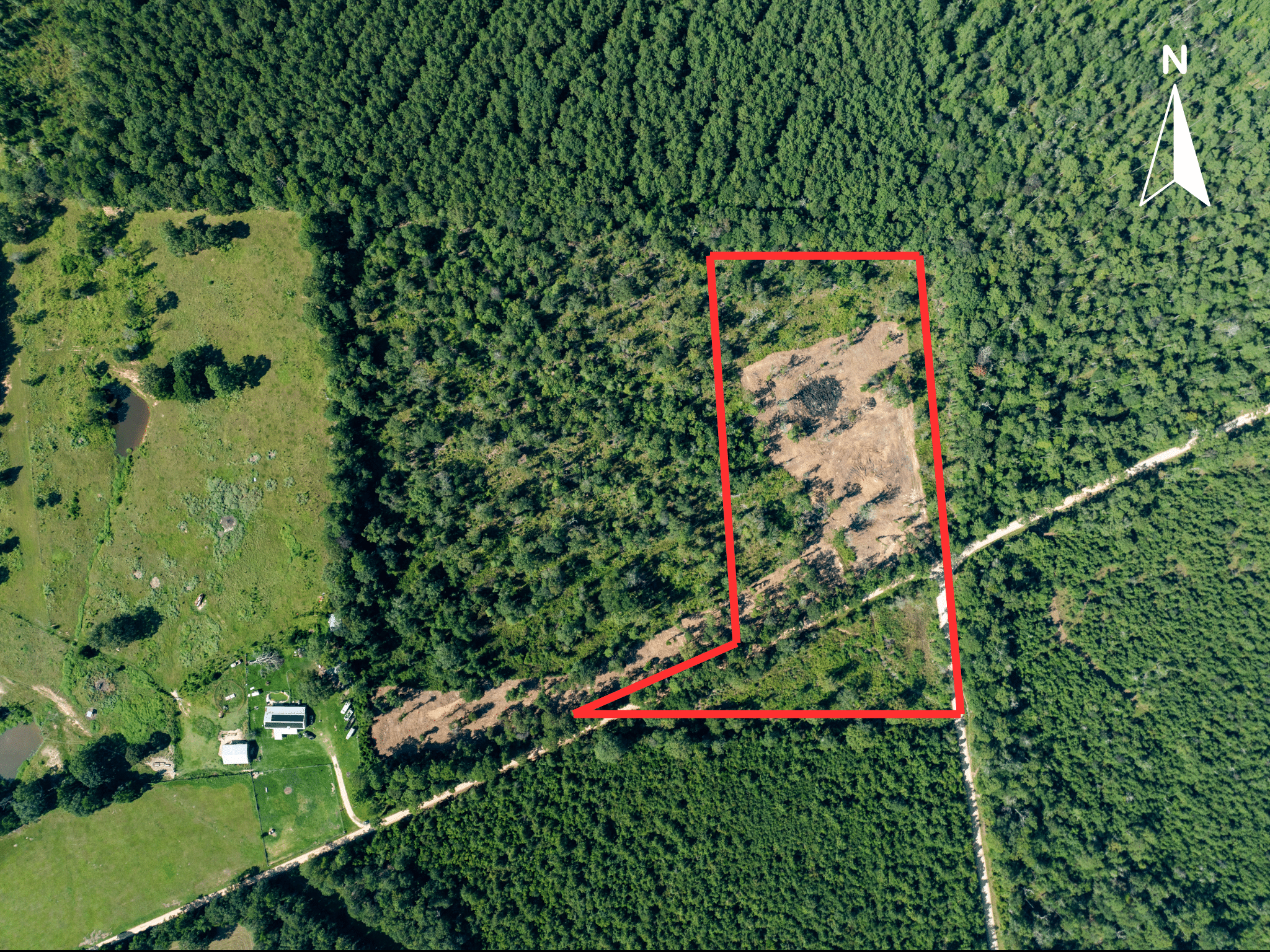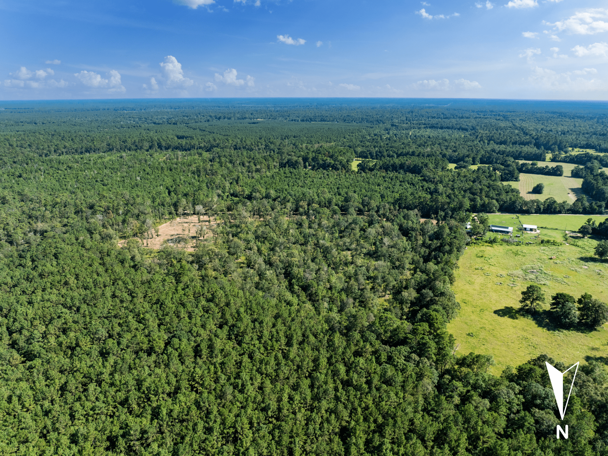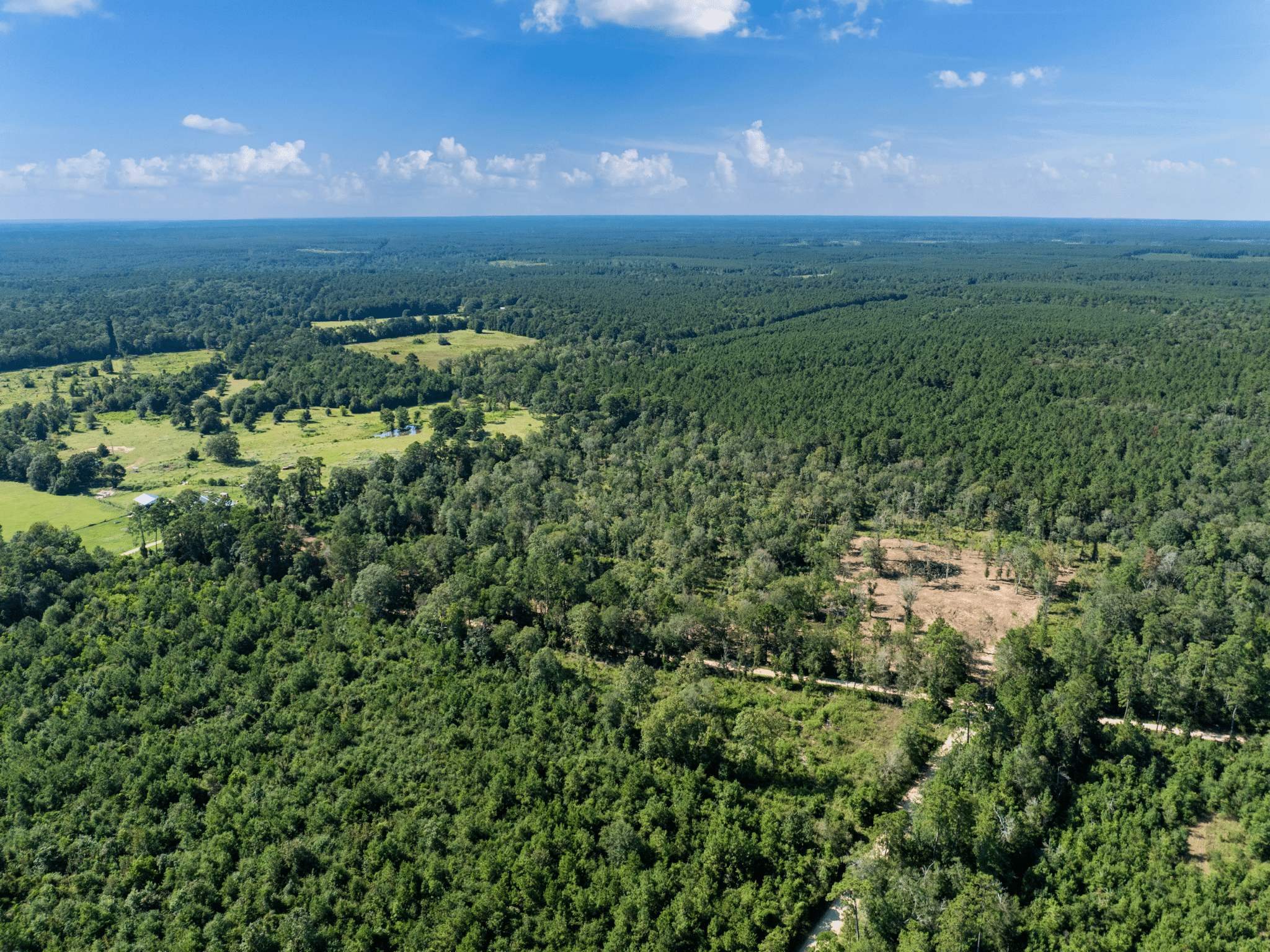 Most of what's available in Polk County is dense timber you have to fight your way through. This one is different. Nearly 16 acres of open ground on the edge of the Piney Woods — scattered trees, open sky, and enough quiet that you can hear yourself think. The kind of place where you can stand in the middle of your land, look around in every direction, and not see a soul.